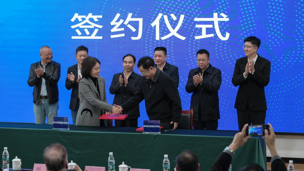 Chongqing Vocational College of Modern Manufacturing, signed the cooperation agreement on behalf of their respective organizations. **Deng Rui**, President of CQEAIE,
