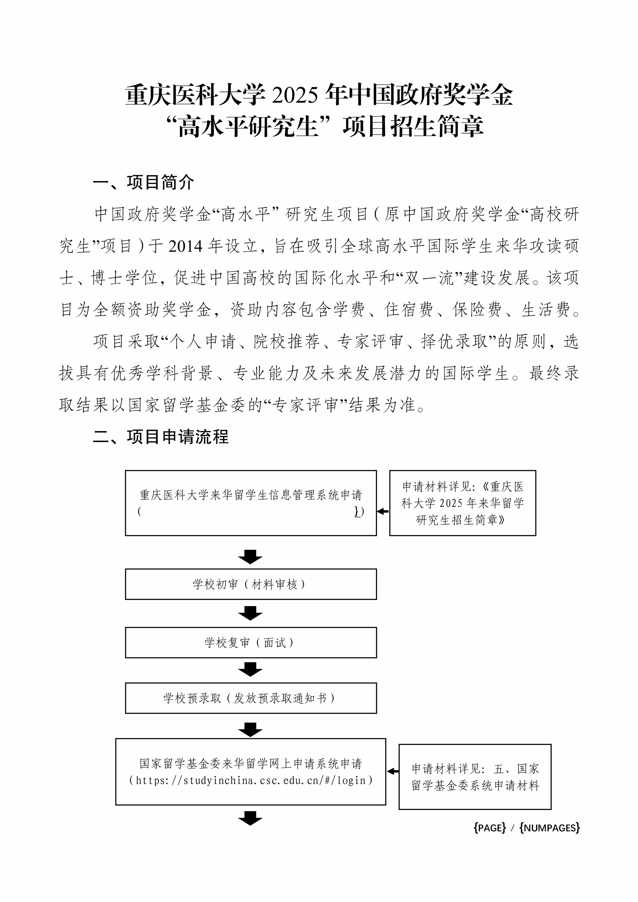 重庆医科大学2025年中国政府奖学金高水平研究生项目招生简章.pdf