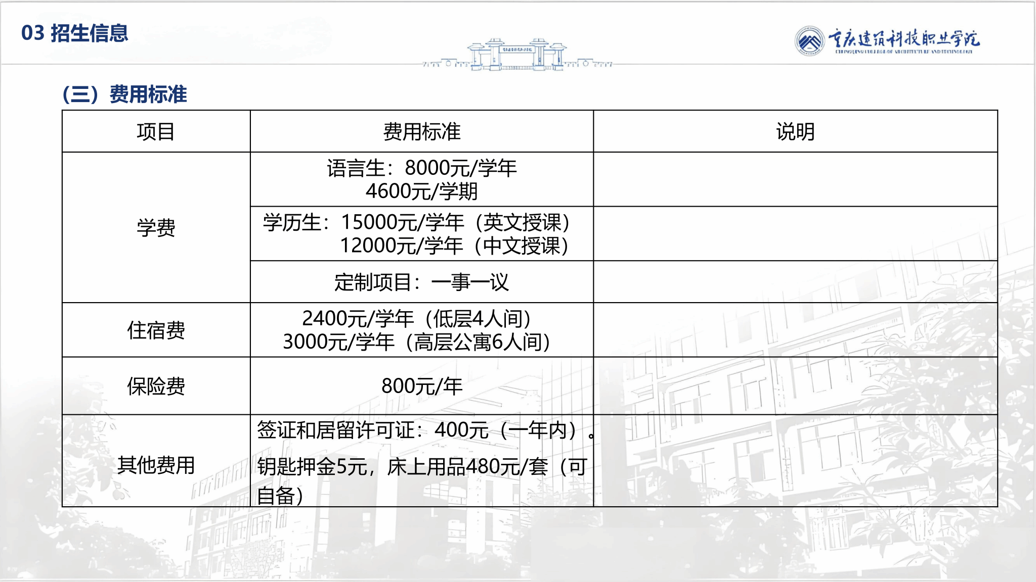 重庆建筑科技职业学院2025年来华留学招生简章