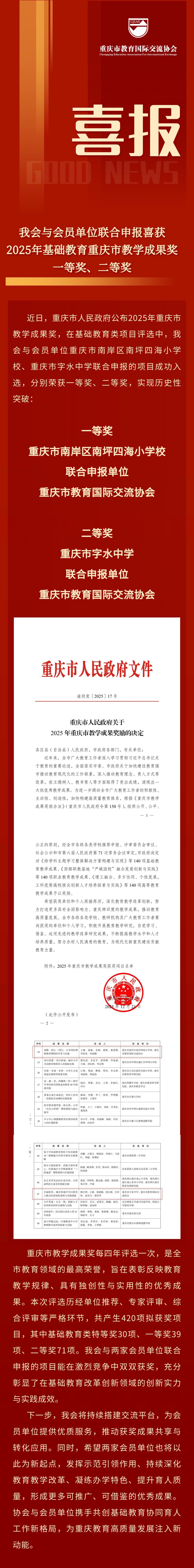 喜报 | 我会与会员单位联合申报喜获2025年基础教育重庆市教学成果奖一等奖、二等奖